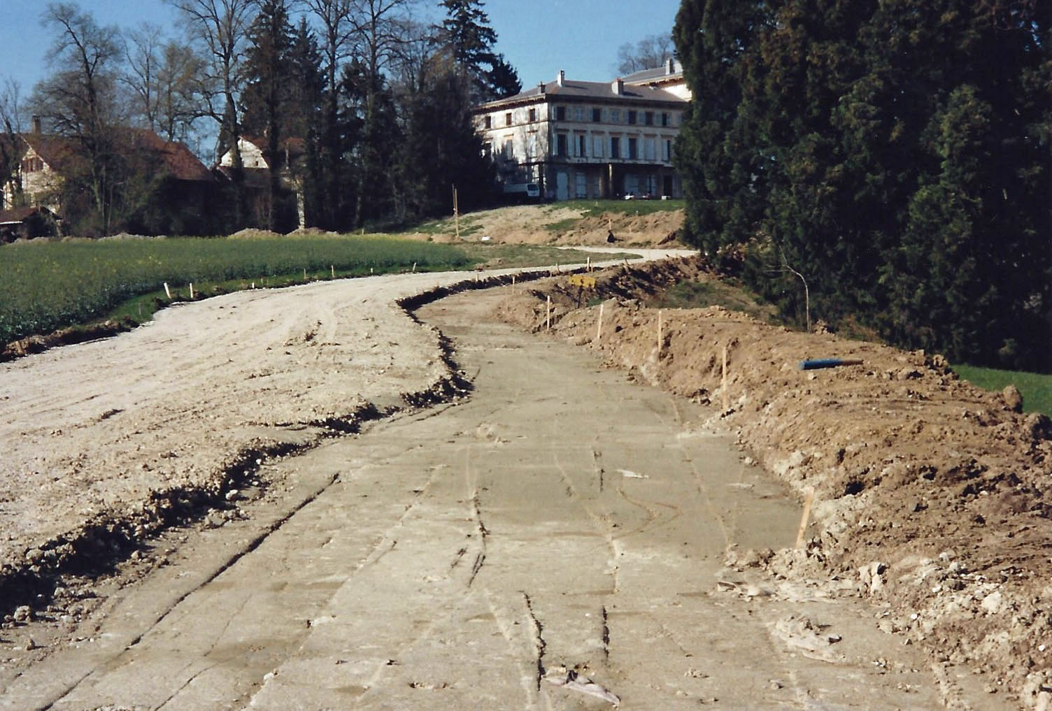 La route est en construction pour accéder à la toute nouvelle école dans l'est de Crissier, sur la commune de Lausanne.