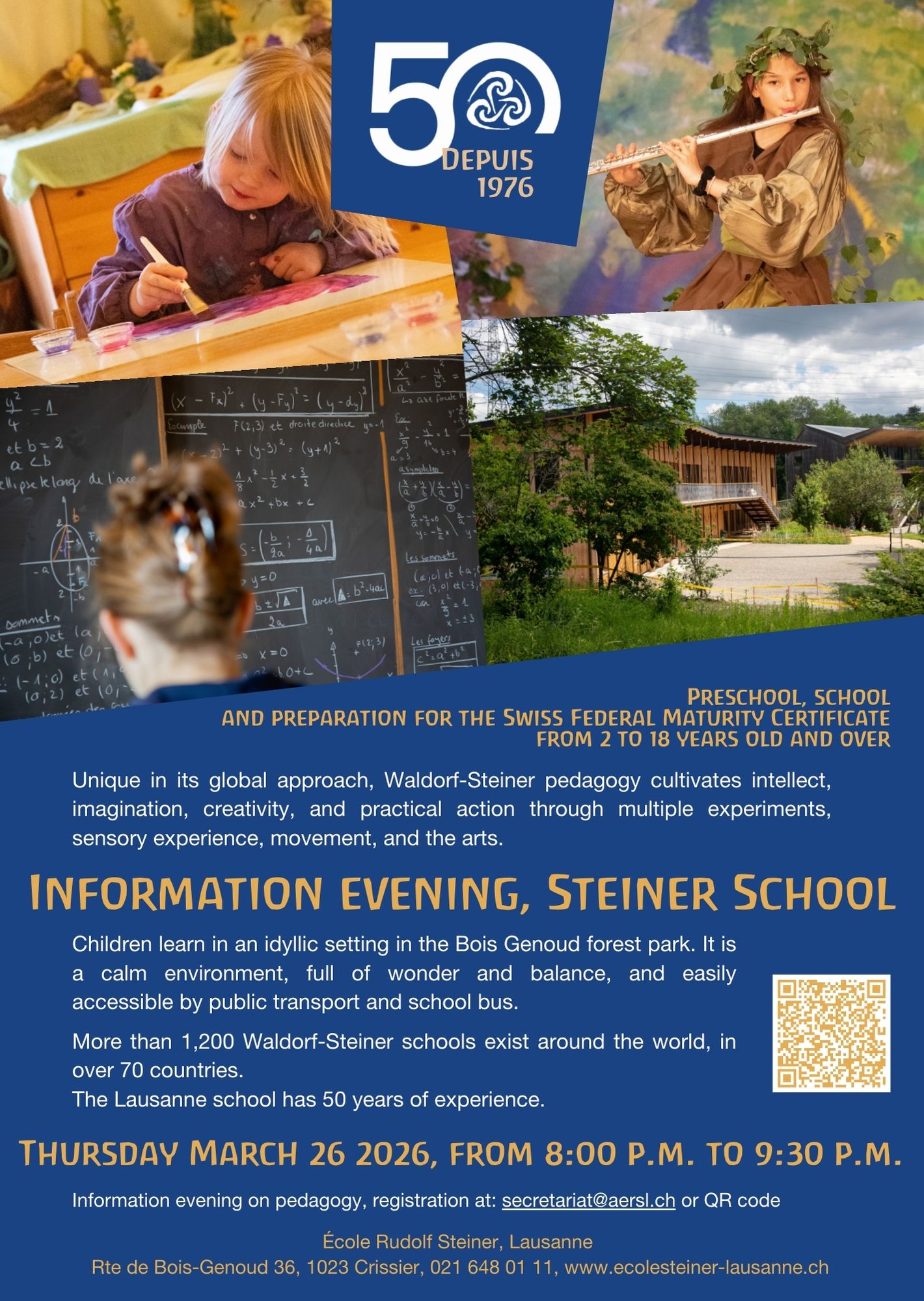 Soirée d’information sur la pédagogie, inscription à : secretariat@aersl.ch ou avec le formulaire ci-dessous.